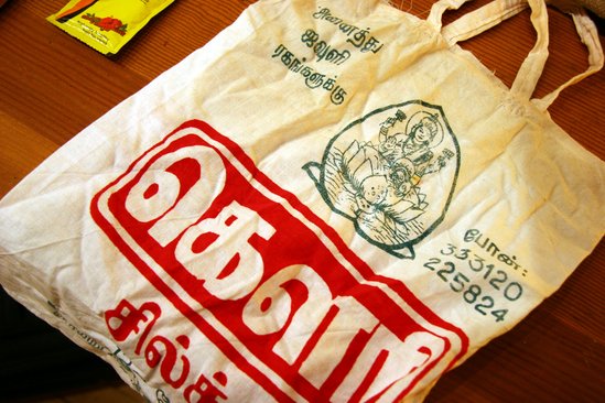Eine einfache Einkaufstasche, die aus Stoff von Reisfasern hergestellt ist.